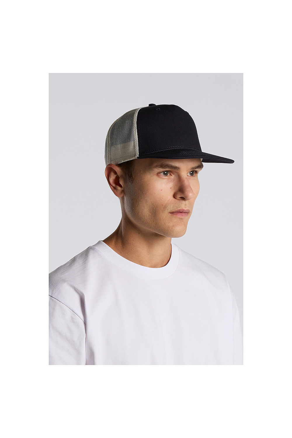 - Contrast mesh back, plastic snapback, tonal under-peak lining