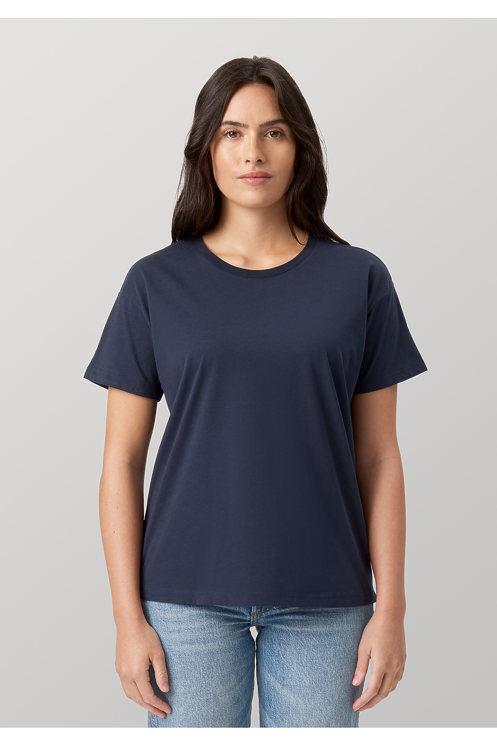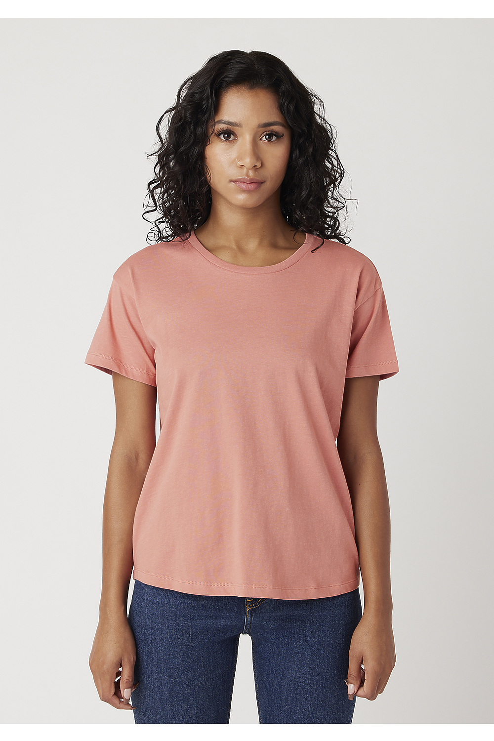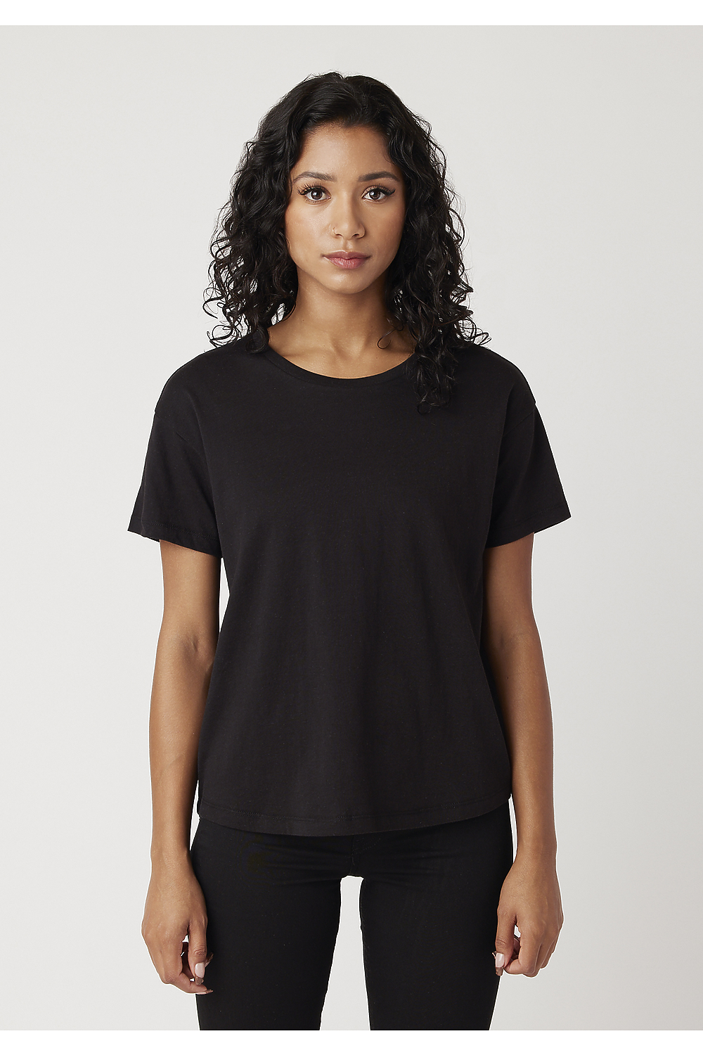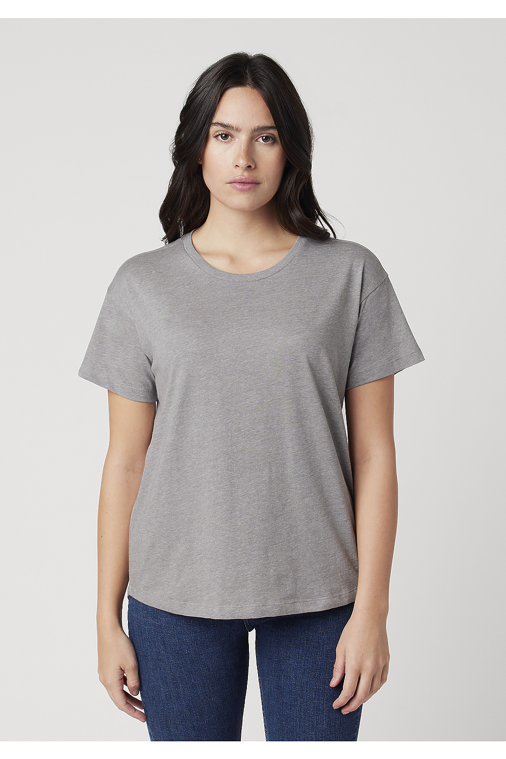 - Offset higher front curve and a lower bottom curve to cover the rear, crew neck, ultra soft hand, side-seamed, tightly knit, superior printability.